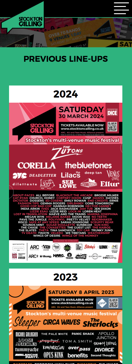 The website showcases the fantastic festival line-up and performance times, split into venues and locations. The site was designed to have clear calls to action, to make it really easy to buy a ticket to the festival.